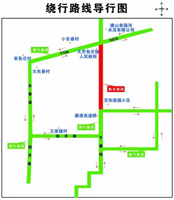 按照项目建设安排,惠联大街、唐爽路(河涧路-瑞丰钢铁)、于唐线(瑞丰钢铁-G509)将实施管网及配套基础设施建设项目。将全段逐步断交施工,根据施工安排部署,将对于唐线(大齐镇政府-唐港高速桥北)进行断交施工,所有车辆禁止通行。