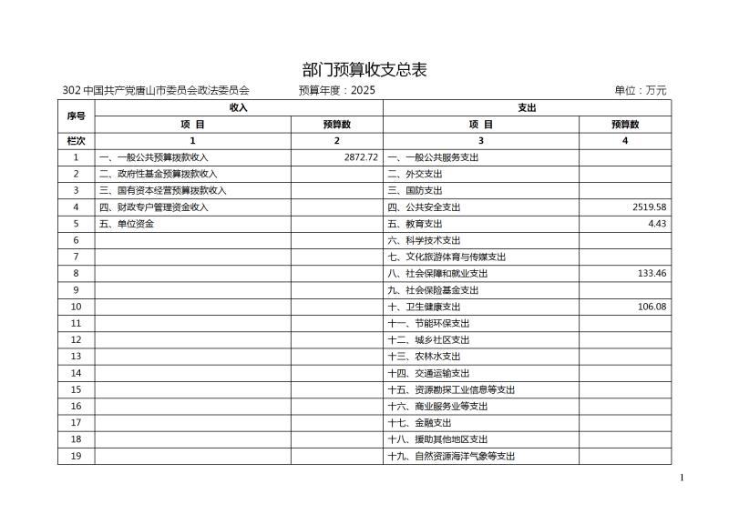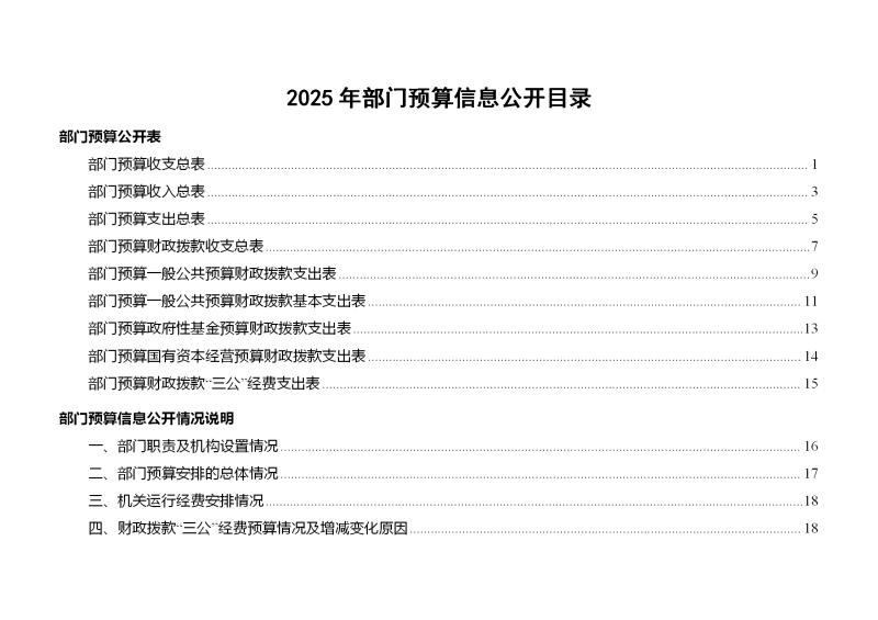 2025年部门预算信息公开目录