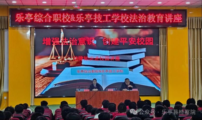 在乐亭县综合职业技术学校,法治副校长从刑事责任年龄解读、青少年的主要犯罪行为以及青少年犯罪的预防等方面通过具体的案例,深入浅出的向学生们传递了“学法、知法、守法、用法”的重要性,通过线上线下相结合的方式,为全校师生上了一堂精彩的法治教育课。