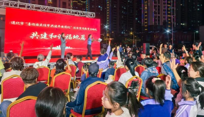 为进一步增强群众法治意识,凝聚爱党爱国爱家情怀,9月26日晚,遵化市在爱琴海城市广场精心举办“喜迎国庆佳节共建平安遵化”法治宣传教育活动。此次活动通过文艺展演、播放短片、有奖答题等多元形式,聚焦预防未成年人违法犯罪,着力提升全民法治素养与社会治理法治化水平,为国庆佳节营造平安和谐的社会氛围。