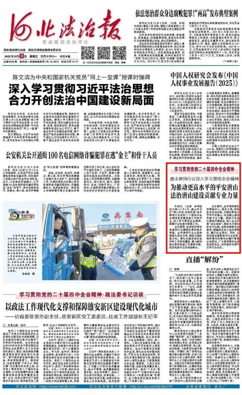 12月2日,唐山市召开“律心向党 法润凤城”全市律师行业党的二十届四中全会精神宣讲暨党建工作培训会,深入学习贯彻全会精神,部署行业党建与管理工作。