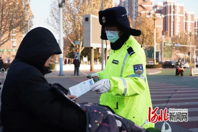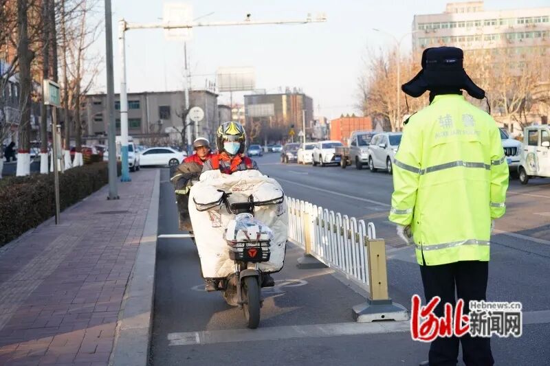 1月5日,唐山市公安局交通管理支队开平交通管理大队在新苑路与中兴道交叉口开展骑乘电动自行车佩戴头盔整治行动,进一步筑牢群众安全防线,推动文明出行理念深入人心。