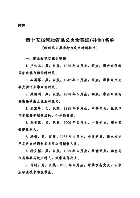 附件:第十五届河北省见义勇为英雄(群体)名单