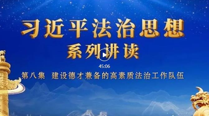 为深入学习宣传贯彻习近平法治思想,中央广播电视总台联合中央政法委、中央依法治国办、中国法学会共同制作推出8集大型专题节目《习近平法治思想系列讲读》。请看第八集《建设德才兼备的高素质法治工作队伍》——