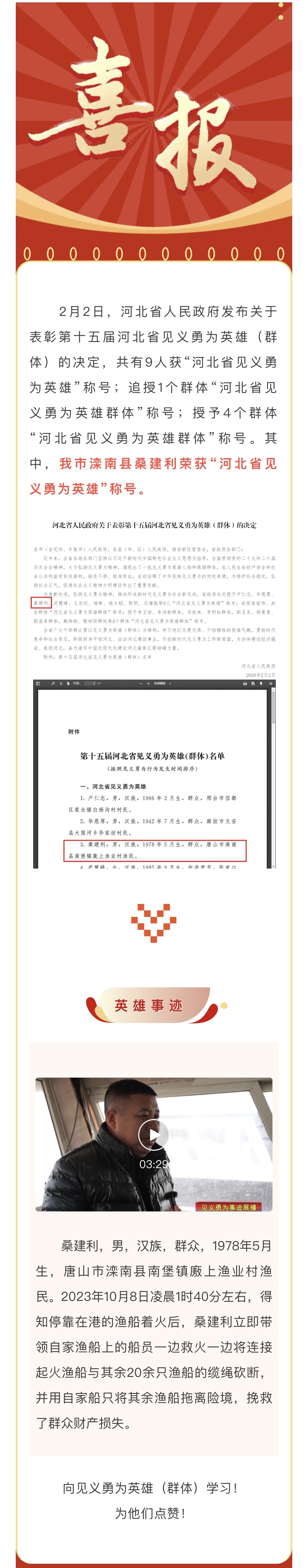 我市桑建利荣获“河北省见义勇为英雄”称号!
