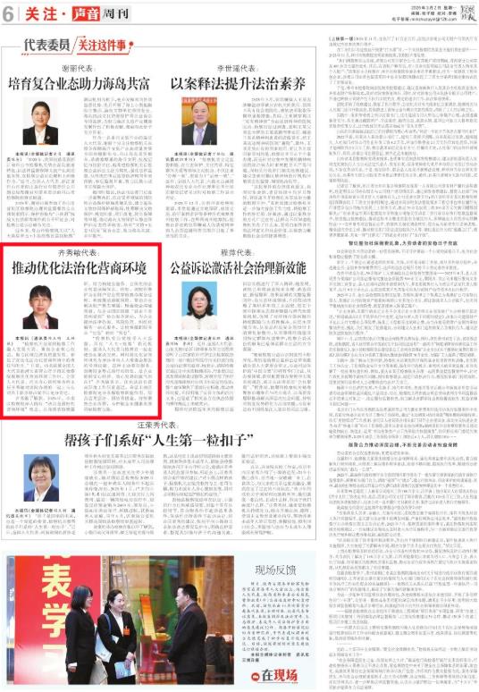 “检察机关自觉将检察工作融入发展大局,聚焦企业核心权益,助力区域经济高质量发展,彰显了在优化法治化营商环境中的责任与担当。”日前,15名驻冀全国人大代表赴河北省唐山市丰南区检察院视察优化营商环境工作时,全国人大代表、河北齐心律师事务所主任齐秀敏对该院办理的一起上市公司员工职务侵占案予以充分肯定。