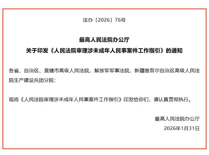 二是内容全面覆盖。《指引》贯穿涉未成年人民事案件的立案、审理、执行、判后回访全流程,既包含程序性规则,也包含实体性规则;既规范审判工作,也规范社会调查、心理疏导等特色延伸工作,形成全流程、全方位、全链条的规则保护体系。