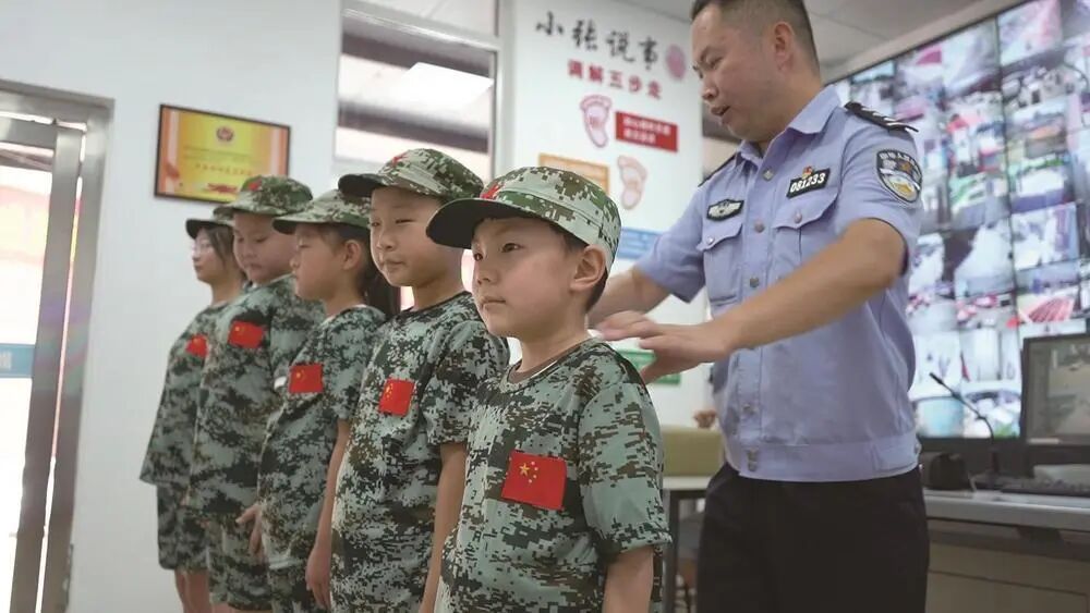 去年夏天,有过多年军旅生涯的张彩杰,又办起了“暑期夏令营”。每天写完作业后,他会带着孩子们练习叠“豆腐块”被子、走队列,用军人的严谨培养孩子的自律习惯。孩子们穿着统一的迷彩服,站军姿,踢正步,丰富人生体验。作为鼓励,学习进步表现优异的孩子会得到张彩杰精心准备的“警察”小熊。